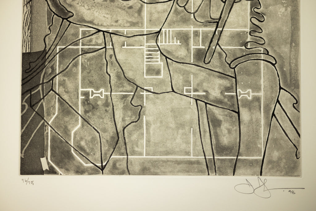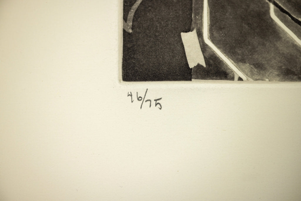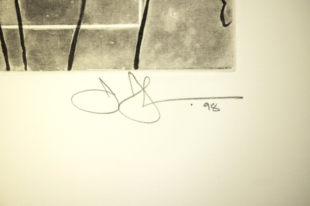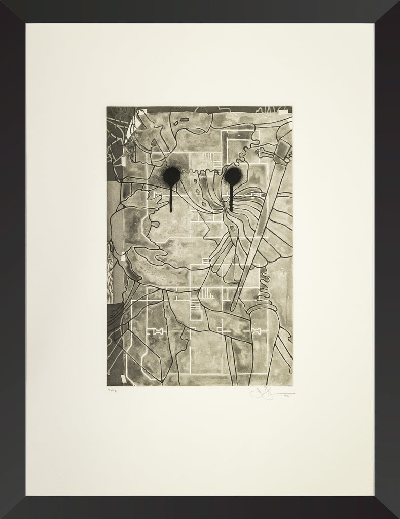 The etching exemplifies Johns' distinctive approach to printmaking, blending abstraction with references to familiar imagery. The intricate etched lines and layered textures create depth and visual complexity, reflecting the artist's ongoing exploration of perception, symbols, and the intersections of everyday objects with high art. The piece highlights Johns' continued innovation in technique and concept during the late 1990s.