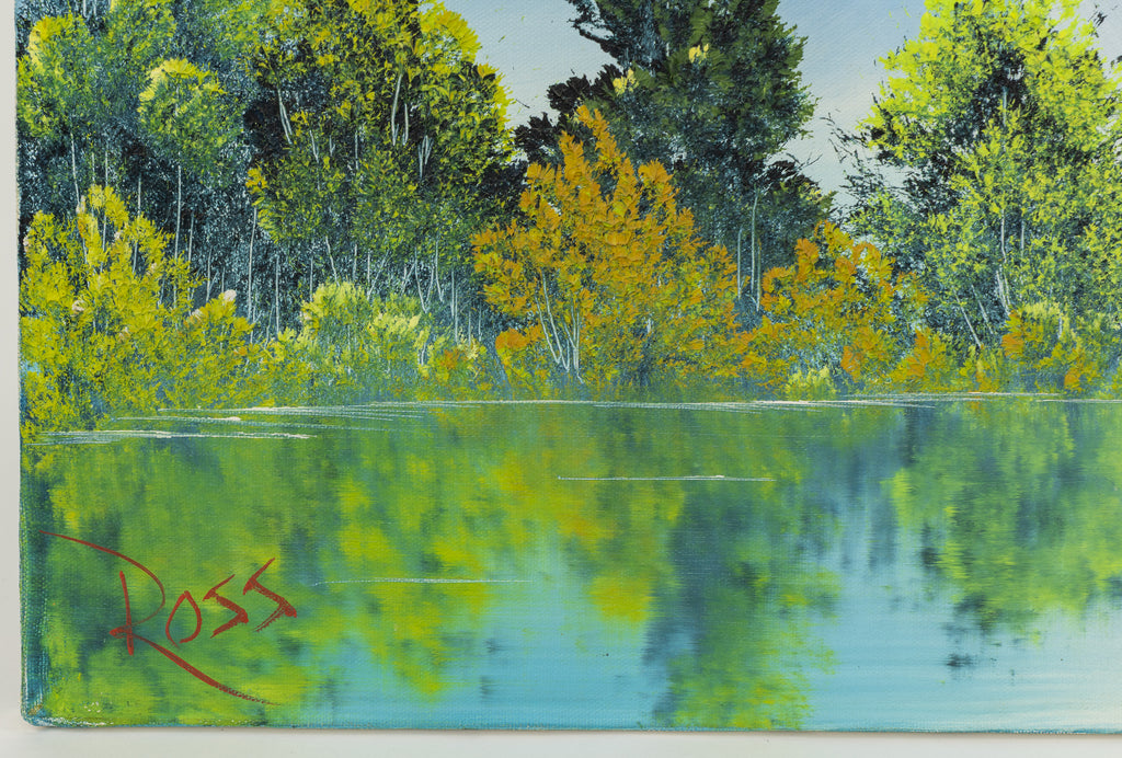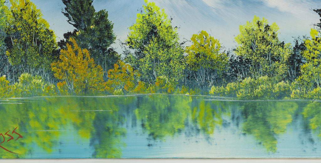 Trained in the wet-on-wet oil painting technique—a method that allows for rapid blending of colors on the canvas—Ross refined and popularized this approach to create spontaneous, atmospheric compositions. His mastery of this method enabled him to produce completed works within minutes, a skill that captivated audiences and demystified the artistic process. Beyond the immediacy of his technique, Ross's paintings reveal a sophisticated understanding of light, composition, and texture. His ability to convey tranquility through layered brushwork and tonal harmony placed him in dialogue with earlier traditions of landscape painting, from the Hudson River School to 20th-century American realism.