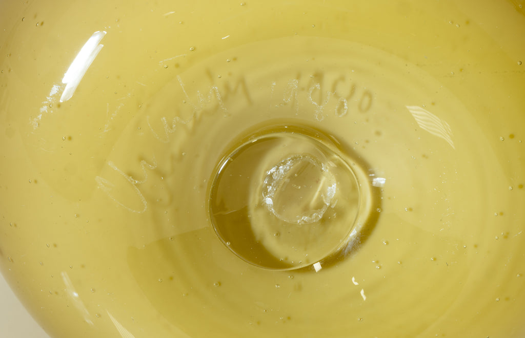 "Blanket Soft Cylinder"  measures 9.375 by 5.25 by 6.25 inches, and is signed and dated on the bottom "Chihuly 80". The purchase includes a Gallery Certificate of Authenticity. This work offers a view into Chihuly's foundational studio methods and his interest in cultural reference and material expression, making it a meaningful example of his early contributions to contemporary glass.