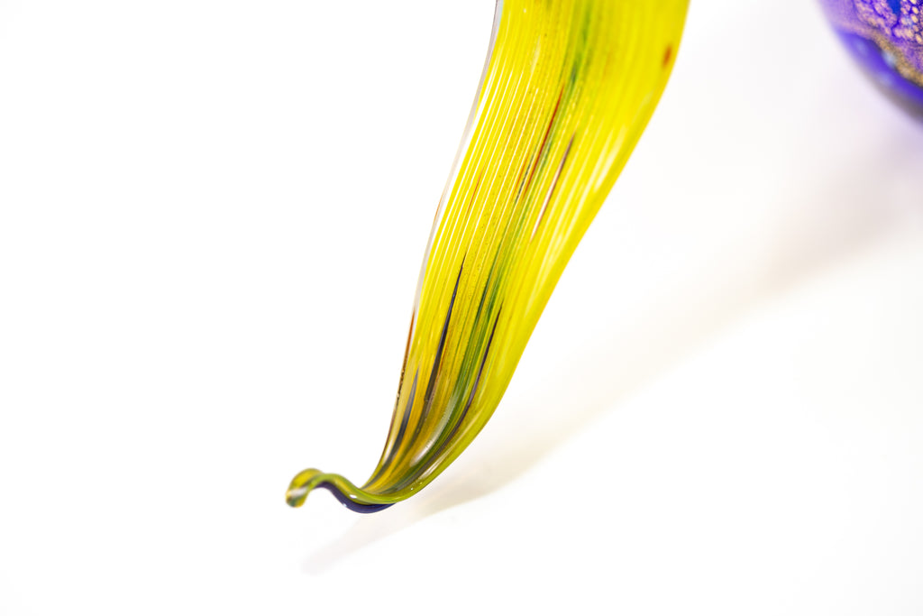 The juxtaposition of the vibrant purple vessel and the luminous yellow leaf highlights Chihuly's interest in the interplay between color, texture, and form. This work underscores the expressive potential of glass as a medium, revealing how its transparency and reflective qualities can enhance sculptural presence. Signed and inscribed "PP02", the piece includes a Gallery Certificate of Authenticity, confirming its provenance within Chihuly's limited-edition studio productions. "Philodendron Ikebana" stands as a refined demonstration of the artist's ability to translate natural inspiration into enduring, three-dimensional glass sculpture.