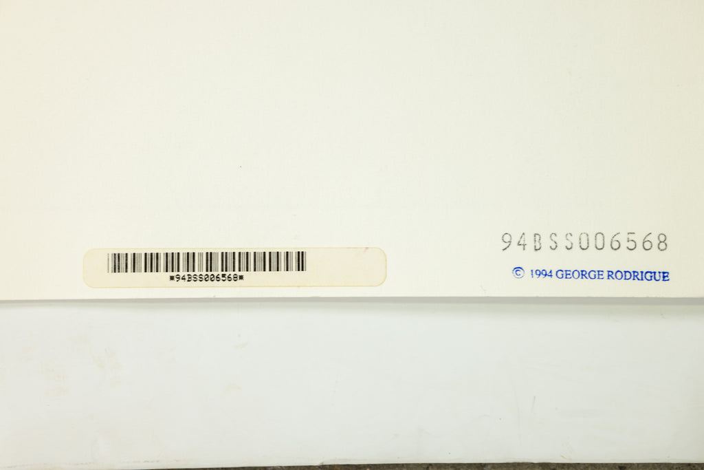 George Rodrigue's "Blue Label" (1995) exemplifies the artist's enduring fascination with his iconic Blue Dog motif, a character that has become synonymous with his legacy and a hallmark of contemporary American art. First introduced in the early 1980s, the Blue Dog evolved from Rodrigue's portraits of Cajun ancestors and his interest in Louisiana's rich folklore, drawing inspiration from the haunting imagery of the loup-garou—a werewolf-like figure in Cajun legend. Over time, the Blue Dog became a vivid and approachable symbol, bridging cultural storytelling with modern pop sensibilities.