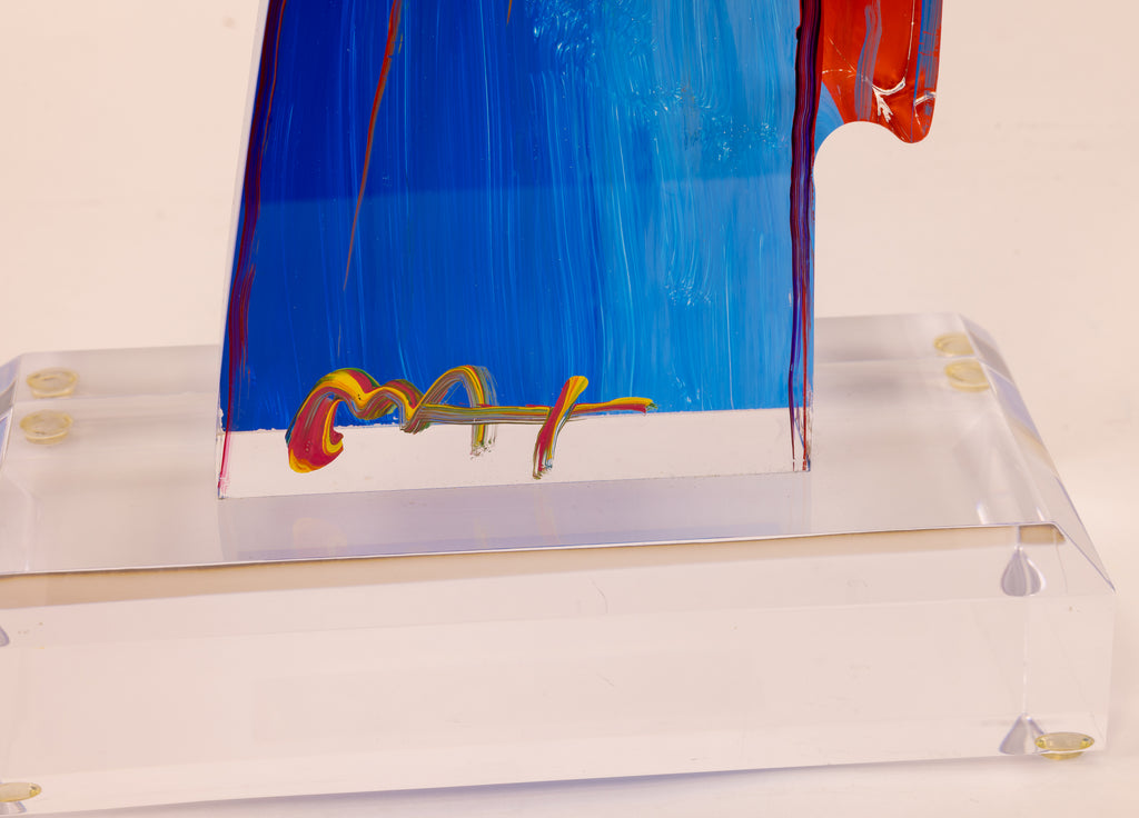 Measuring 18.75 inches in height and 12.75 inches in width, Peter Max's "Artist: Peter Max" acrylic sculpture is a commanding presence. Each element, from the angel's flowing form to the gently cradled heart, demonstrates Max's attention to gesture, composition, and the emotive potential of color.