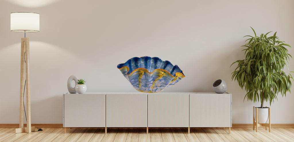 Chihuly's own work is distinguished by its exploration of organic form, scale, and color within glass. Beginning in the 1970s, he created series such as Cylinders and Baskets, which demonstrated his interest in pushing glass beyond functional objects toward sculptural expression. Later series, including Seaforms, Macchia, Persians, and Ikebana, further developed these ideas, often inspired by natural systems, botany, and global craft traditions. The Chandeliers and Installations of the 1980s and 1990s brought monumental scale to his work, often filling architectural spaces with suspended or sprawling glass structures.