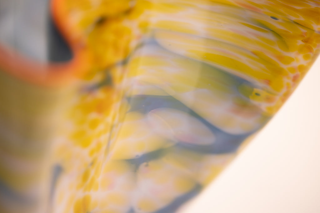 Dale Chihuly (b. 1941) is an American artist whose career has been central to the development of glass as a contemporary art medium. Born in Tacoma, Washington, Chihuly pursued an early interest in design before turning to glass. He studied interior design at the University of Washington, where he first experimented with glassblowing in 1961. After completing a Bachelor of Arts degree in 1965, he enrolled at the University of Wisconsin–Madison, which housed one of the first glass programs in the United States under Harvey Littleton. There, Chihuly earned a Master of Science in sculpture. He continued his training at the Rhode Island School of Design (RISD), receiving a Master of Fine Arts in 1968.