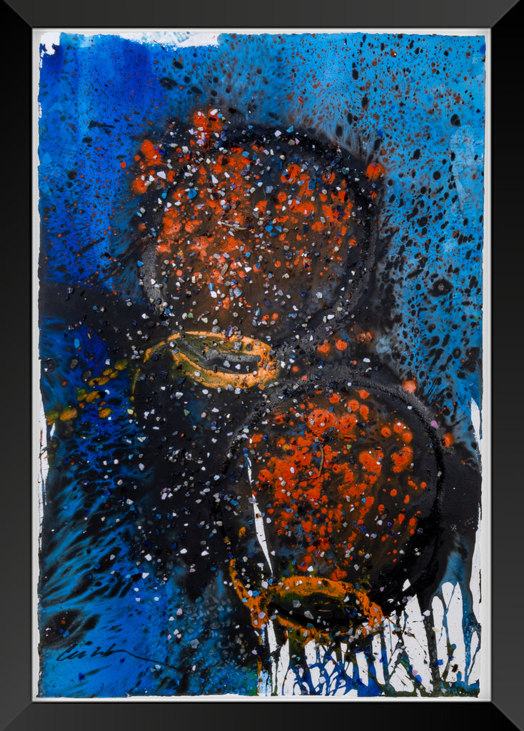 Although Chihuly is best known for his glass installations, his paintings stand as significant works in their own right. They often serve as both independent expressions and conceptual extensions of his sculptural practice. In "Orange and Blue Baskets", dynamic brushwork and saturated hues echo the vitality and fluidity of blown glass, while the interplay of orange and blue heightens the sense of vibrancy and depth.