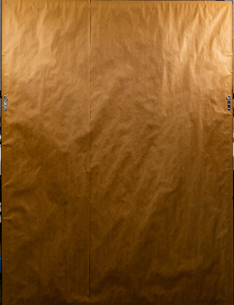 Denny Dent's "Reverse Hendrix" captures the electric spirit of one of rock and roll's most iconic figures through the artist's signature, high-energy style. Executed in oil on paper around 1988, the work is a monumental example of Dent's ability to fuse painting with performance. Measuring an immense 69 by 51 inches, and presented in its frame, the composition engulfs the viewer in the dynamism and scale that defined Dent's practice.