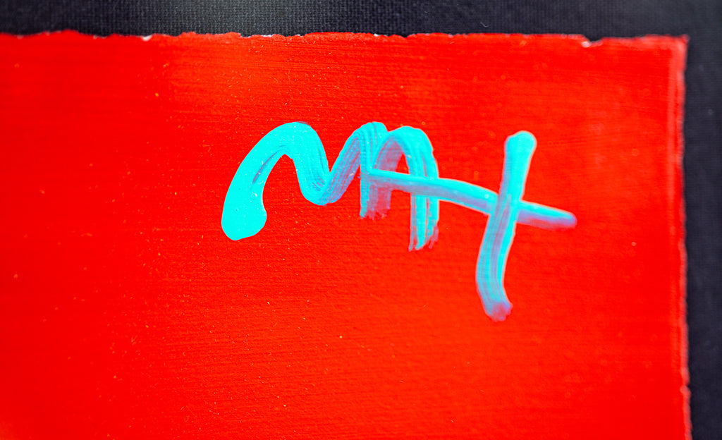 Signed "Max" on the front and further inscribed with a personalized note and full signature on the verso, this work carries both the artist's personal and professional mark of authenticity. It is accompanied by an original gallery certificate of authenticity and complete provenance documentation, underscoring its place within Max's established body of work. "Umbrella Man on Red" (v. III #38) situates itself within the continuum of Max's late career practice, reaffirming the iconic silhouette's enduring significance while demonstrating the artist's mastery of painterly immediacy and chromatic intensity.