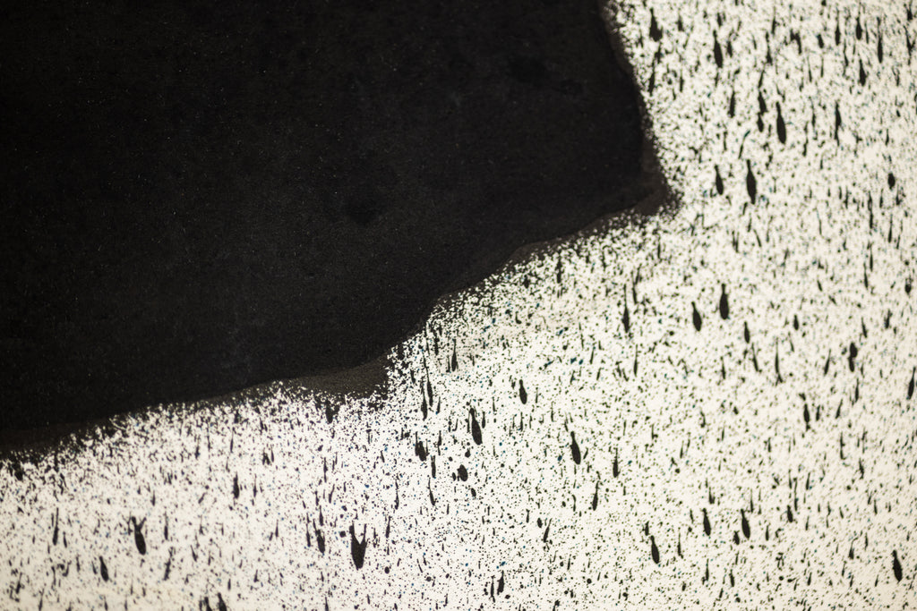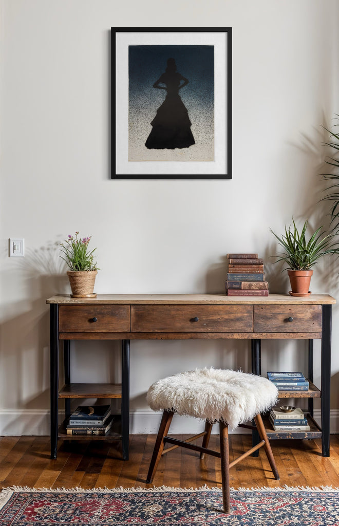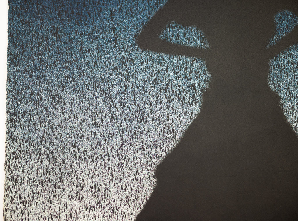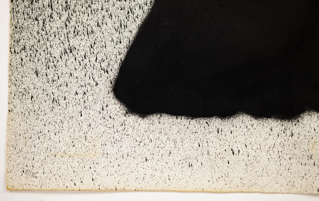 The composition presents the silhouetted figure of a dancer rendered in stark contrast against a softly modulated, granular ground. The figure appears suspended between presence and absence, simultaneously recognizable and abstracted. Ruscha's use of tonal gradation and atmospheric texture recalls photographic source material, yet the image resists narrative specificity. The title introduces an element of linguistic framing, a strategy central to Ruscha's practice, encouraging viewers to consider the relationship between word, image, and expectation. In "Bailarina", the elegance implied by the title is counterbalanced by the anonymity of the figure, reinforcing Ruscha's interest in detachment and visual neutrality.
