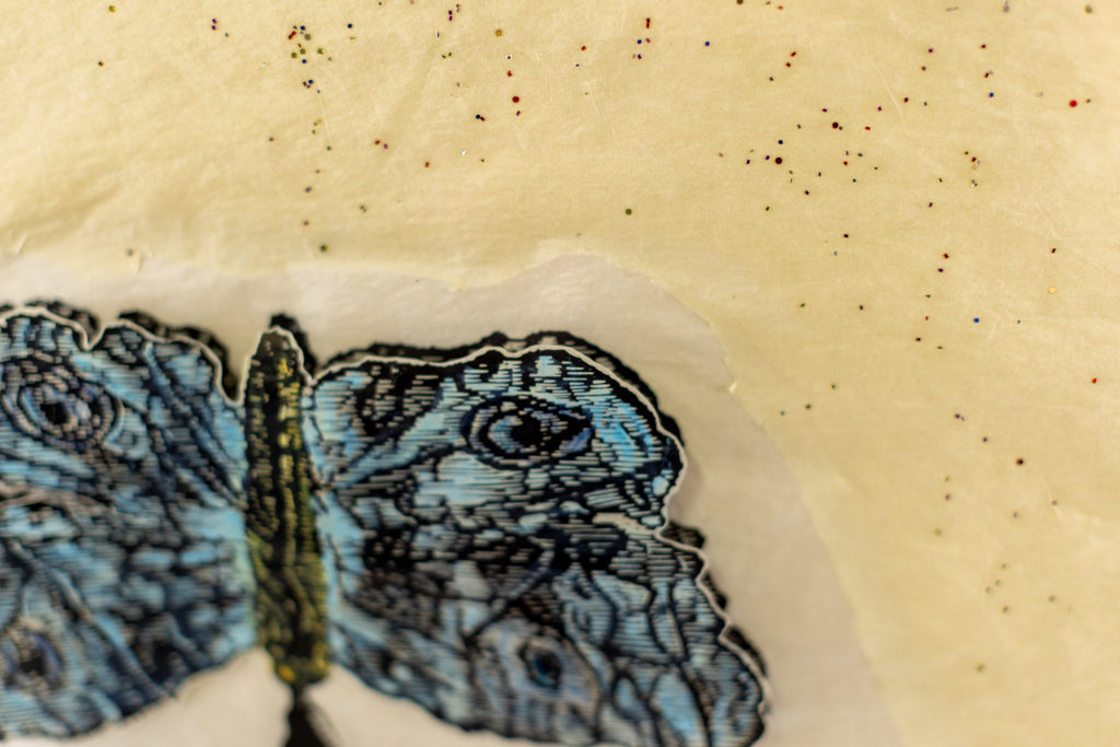 Kiki Smith Moth 1996 Woodcut Collage and Glitter Signed Edition of 42