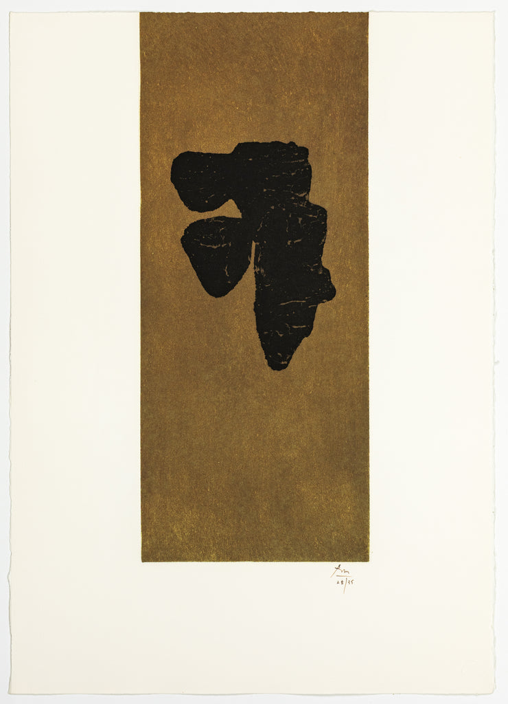 "Primal Sign III" belongs to a series of prints in which Robert Motherwell explored reductive abstraction through a spare vocabulary of line, tone, and symbolic gesture. Executed between 1979-1980, this piece is a color aquatint and lift-ground etching on high–quality German etching paper, printed in a limited edition of 35. The present example bears the artist's initials and edition number in pencil, and is accompanied by a gallery certificate of authenticity.