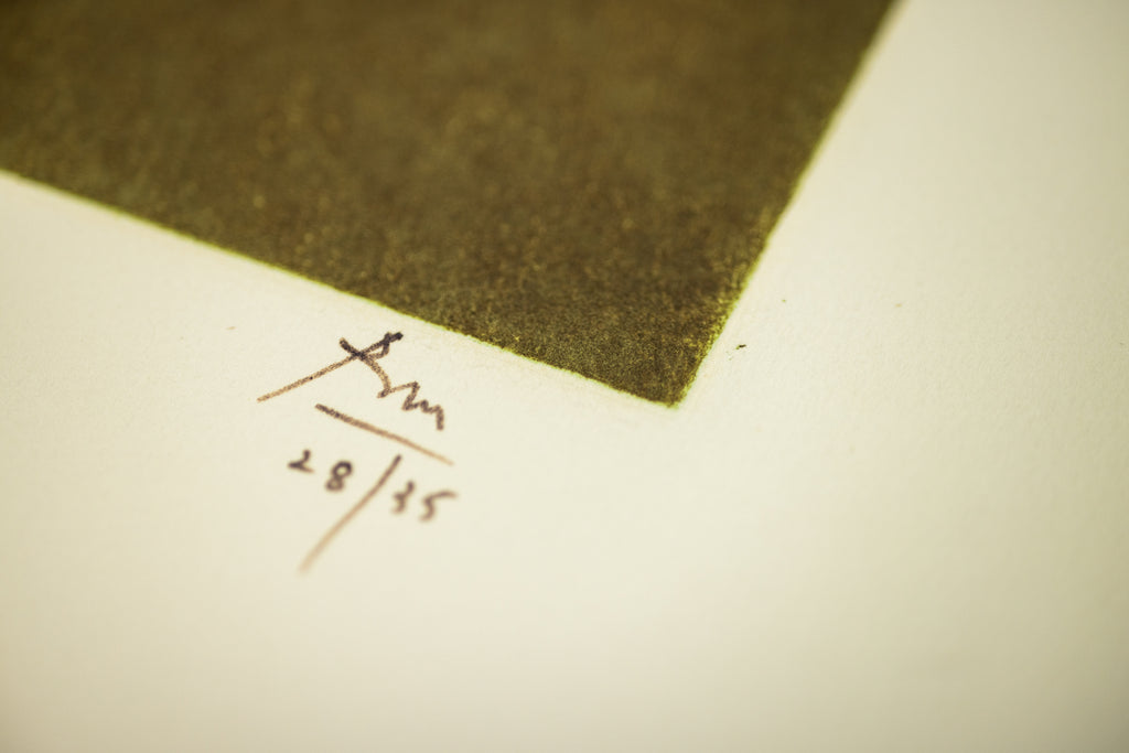 Motherwell used the aquatint technique—combined with lift-ground etching—to achieve nuanced tonal fields and subtle gradations. This method allowed him to create atmospheric depth and weight in what remains a composed, minimal, yet expressive abstract image. Aquatint, as a variant of intaglio, is well suited to producing large planes of tone rather than discrete lines; in Motherwell's hands, these tonal zones evoke sublimated emotions and meditative space.