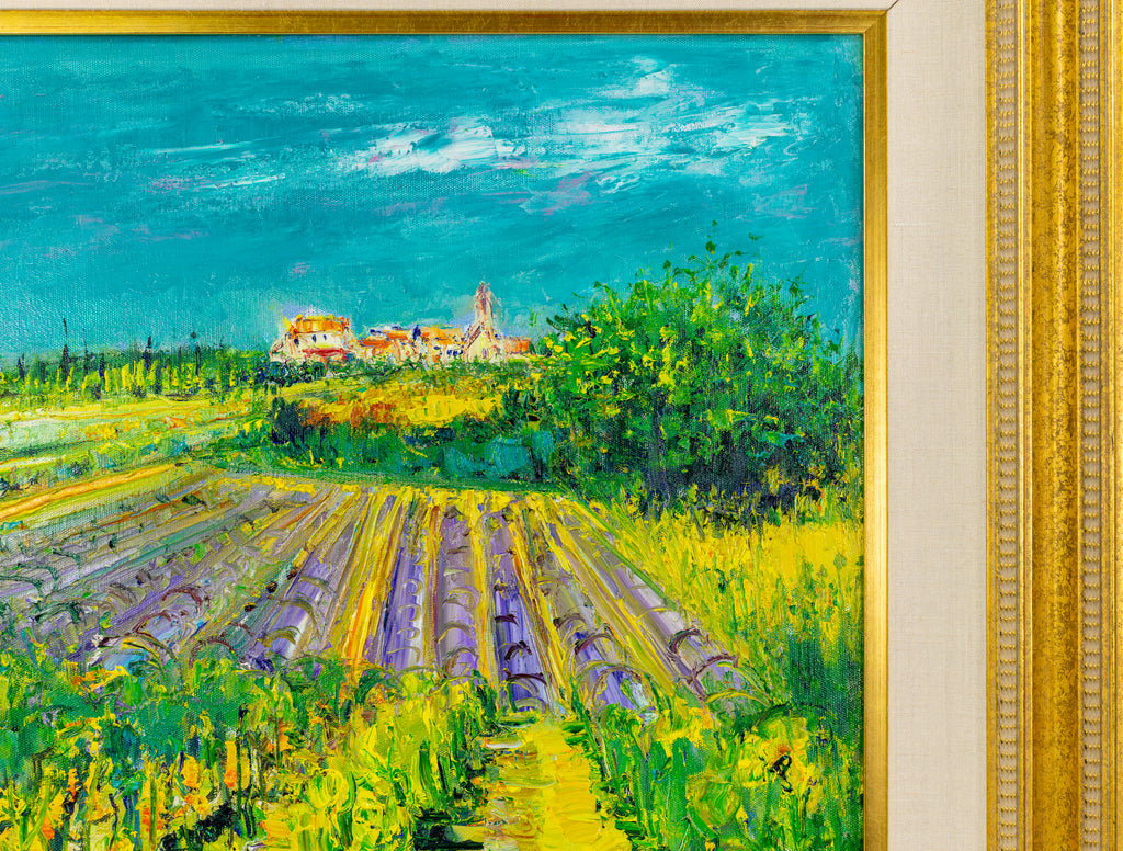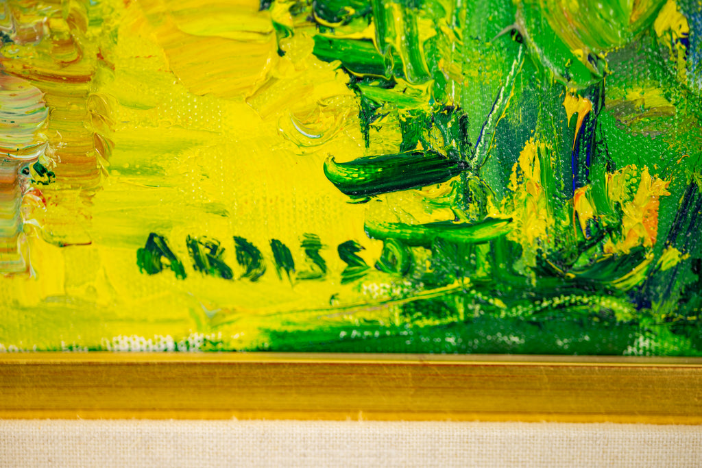 The painting is signed by Ardissone in the lower right corner and is accompanied by a gallery Certificate of Authenticity, which documents the work's provenance. The canvas measures 19.75 by 24 inches, with an overall framed size of 29.5 by 33.75 inches, allowing for close viewing while preserving a comprehensive sense of the scene. "European Vineyard" illustrates Ardissone's sustained engagement with European landscapes, balancing detailed observation with an expressive rendering of color and form that conveys atmosphere and spatial depth.