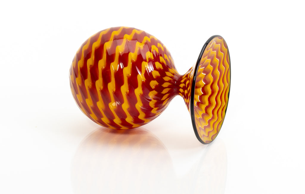 The etched signature "Chihuly 98" on the smallest element authenticates the work and situates it within a pivotal period in the artist's career, when his large-scale installations and complex sets were gaining international acclaim. Accompanied by a gallery certificate of authenticity, "Cinnabar and Coral Persian Set with Black Lip Wraps" exemplifies Chihuly's mastery of glass as a medium capable of both intimacy and grandeur.