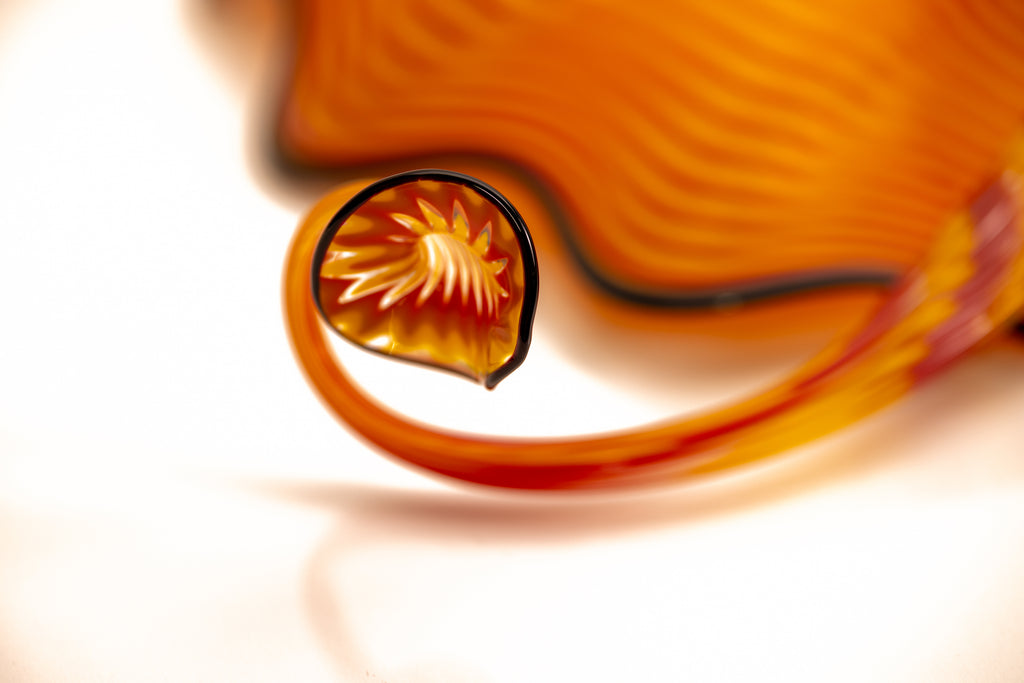 Chihuly's series-based approach is central to his practice. Among his most recognized bodies of work are the Cylinders and Baskets of the 1970s, the Seaforms and Macchia of the 1980s, and later the monumental Chandeliers, Persians, and Ikebana. These series demonstrate his interest in both organic and architectural forms, often exploring how glass interacts with light, space, and environment. His installations frequently incorporate hundreds of individual glass elements arranged into immersive displays, transforming the viewer's perception of scale and material.