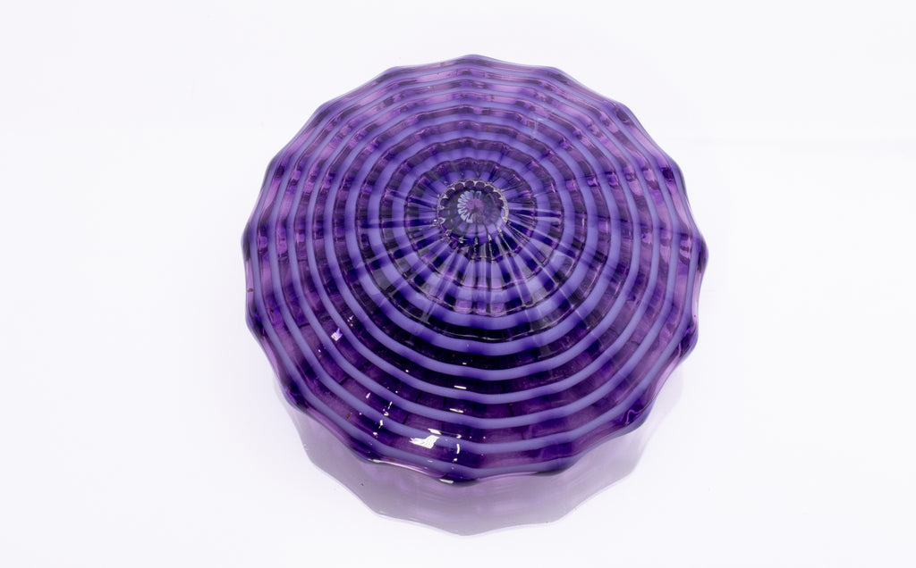 "Imperial Iris Persian" exemplifies Dale Chihuly's sustained exploration of form, color, and movement within his celebrated Persian series, a body of work that emerged in the late 1980s and remains central to his artistic legacy. Characterized by exuberant profiles, undulating rims, and layered chromatic effects, the Persian works reflect Chihuly's interest in historical glass traditions while asserting a distinctly contemporary visual language.
