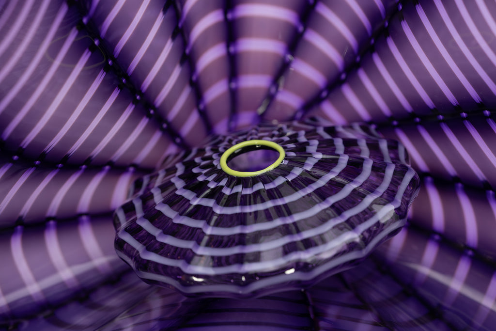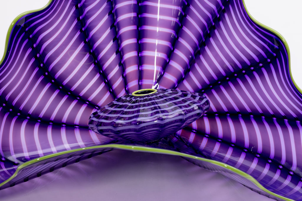 Early in his career, Chihuly explored vessel forms, baskets, and architectural compositions, gradually moving away from functional objects toward sculptural abstraction. His work became increasingly ambitious in scale and complexity, incorporating bold color, fluid line, and organic forms inspired by natural phenomena such as sea life, flowers, and landscapes. Series such as Baskets, Seaforms, Persians, Macchia, and Chandeliers exemplify his ability to combine technical virtuosity with expressive freedom, often resulting in immersive environments rather than isolated objects.