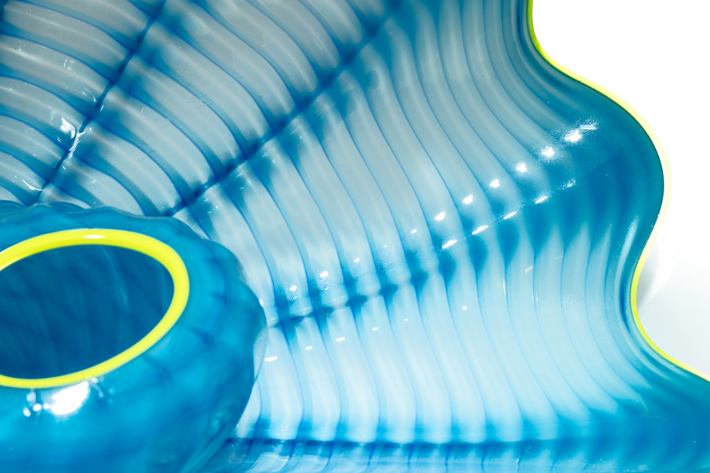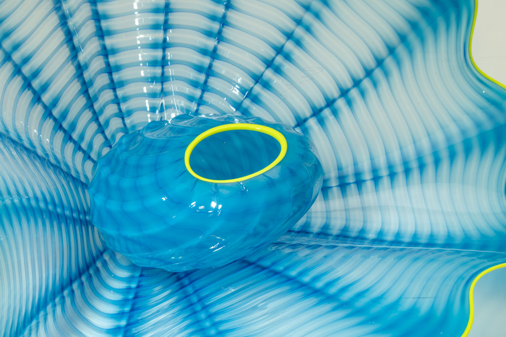 Dale Chihuly (b. 1941) is widely regarded as one of the most influential figures in contemporary glass art, known for transforming the medium into a vehicle for large-scale, experimental, and collaborative sculpture. Chihuly's practice emphasizes organic, biomorphic forms and vibrant color combinations, producing works that often evoke natural structures, such as plants, sea life, and fungi. His pioneering techniques—including the development of team-based glassblowing methods and complex installation strategies—have expanded the expressive possibilities of glass beyond traditional functional forms.