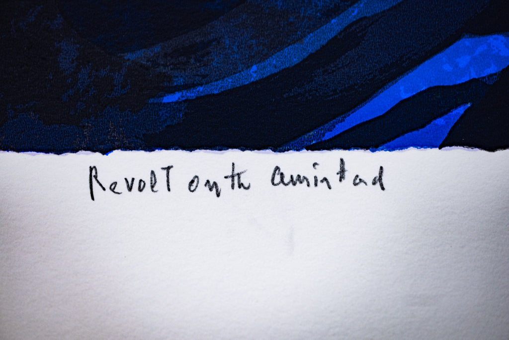 Jacob Lawrence's "Revolt on the Amistad" (1989) stands among the artist's most powerful visual narratives, encapsulating his lifelong engagement with themes of freedom, resistance, and the collective struggle for justice. Executed as a richly layered screen-print in colors, the composition revisits one of the pivotal events in African American and maritime history—the 1839 revolt aboard the Spanish slave ship La Amistad, during which captured Africans rose against their captors in a courageous act of rebellion.