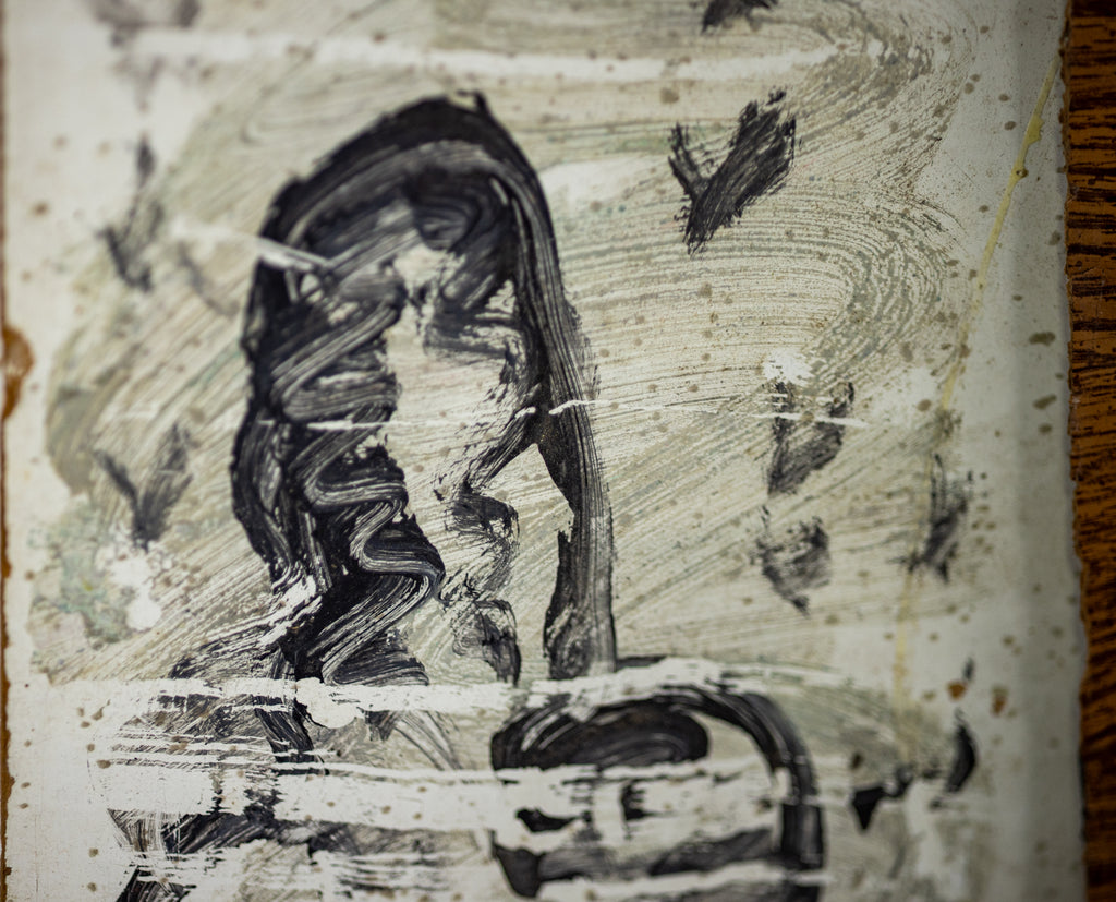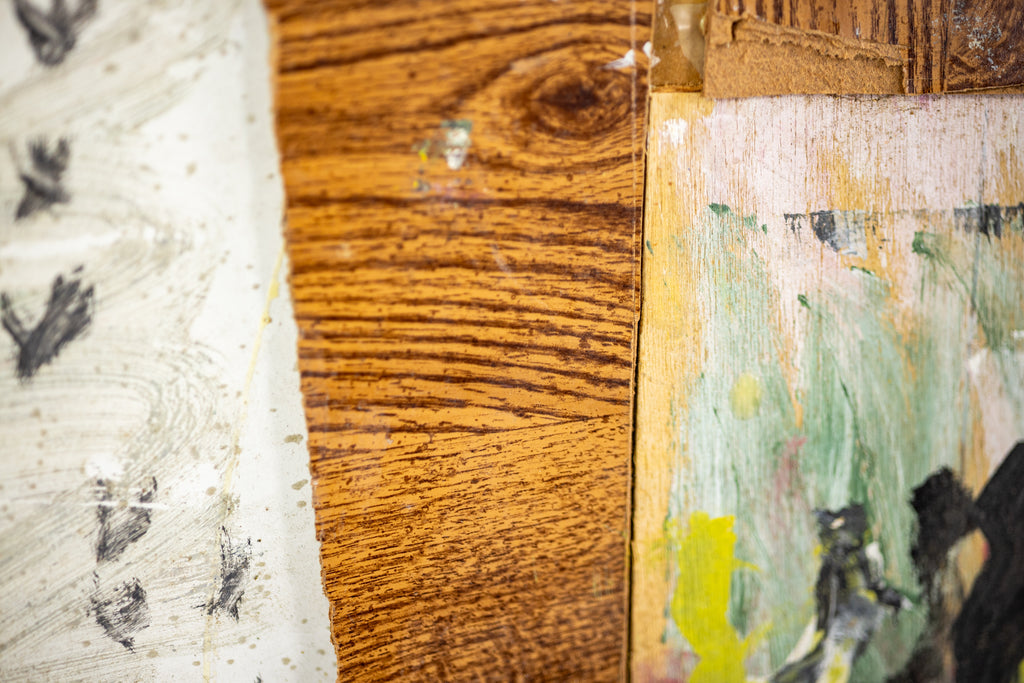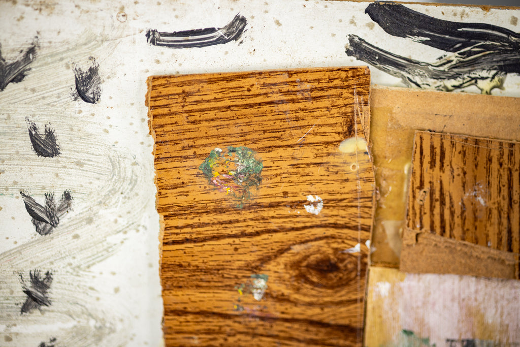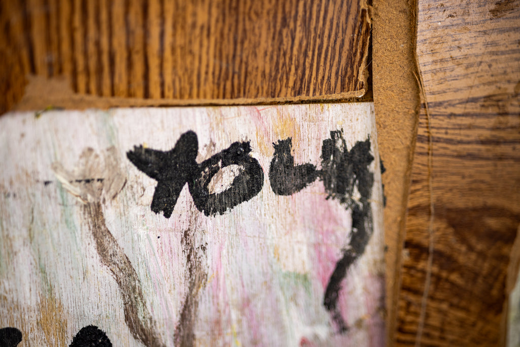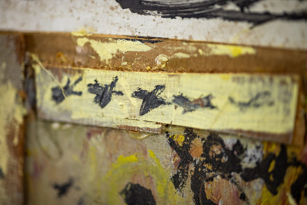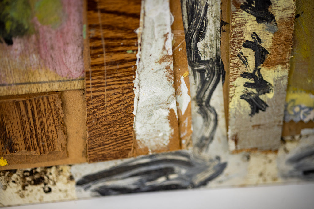 Condition: In the style of found art with characteristic marks and textures typical of Young's mixed media practice