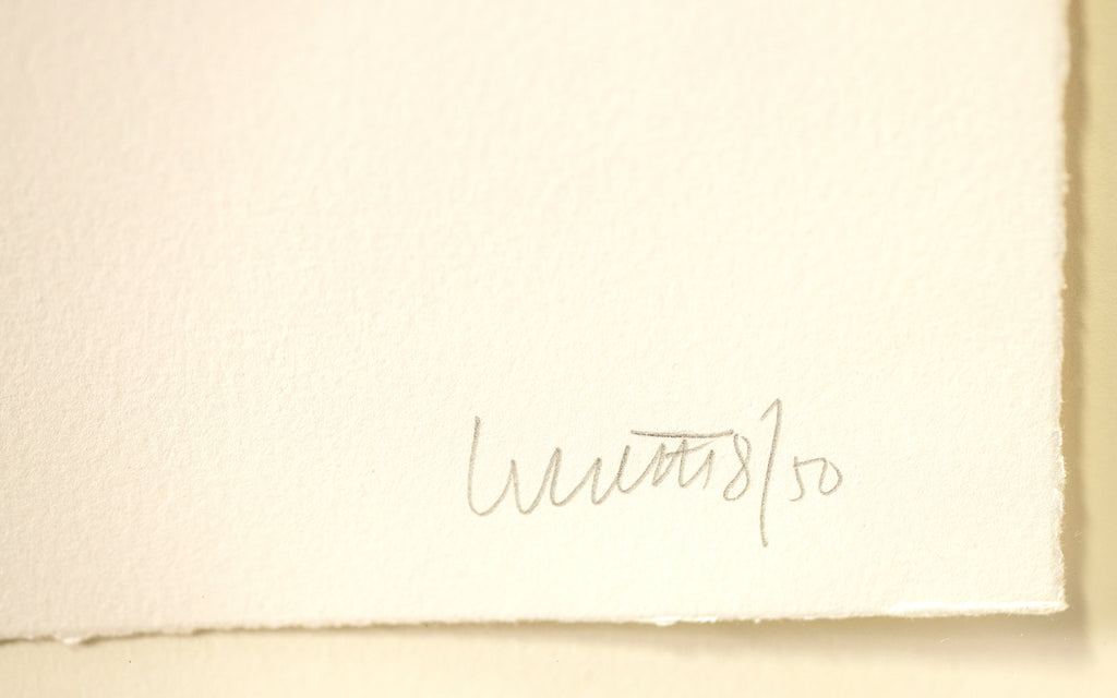 The diptych format is a particularly notable aspect of this work. While LeWitt is widely known for single-sheet prints, wall drawings, and modular structures, multi-panel works of this scale are comparatively rare within his graphic oeuvre. Here, the paired sheets introduce a spatial dialogue between panels, extending LeWitt's interest in repetition and variation across a broader physical field. The verticality and cumulative width of the diptych amplify the work's architectural presence, reinforcing the artist's long-standing engagement with how abstract systems occupy and activate space.